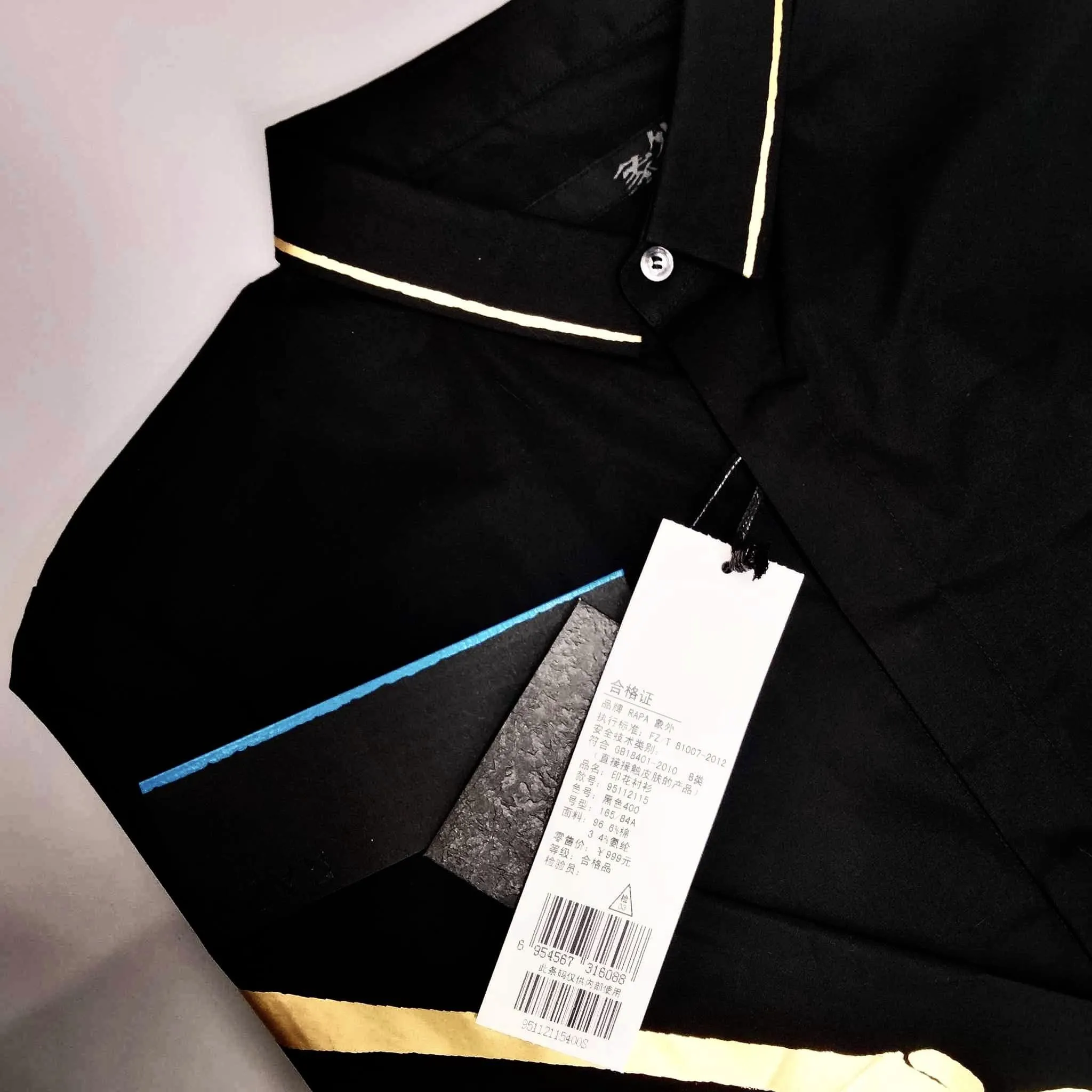 Chủ yếu là màu đen với các điểm nhấn màu vàng tinh tế, có viền vàng ở cổ áo và sọc vàng chạy dọc theo tay áo, tạo thêm nét thanh lịch và tinh tế.